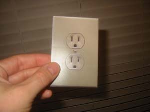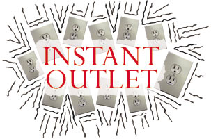 Introducing the instant outlet! These simple cards are printed with the full color image of an electrical outlet. |